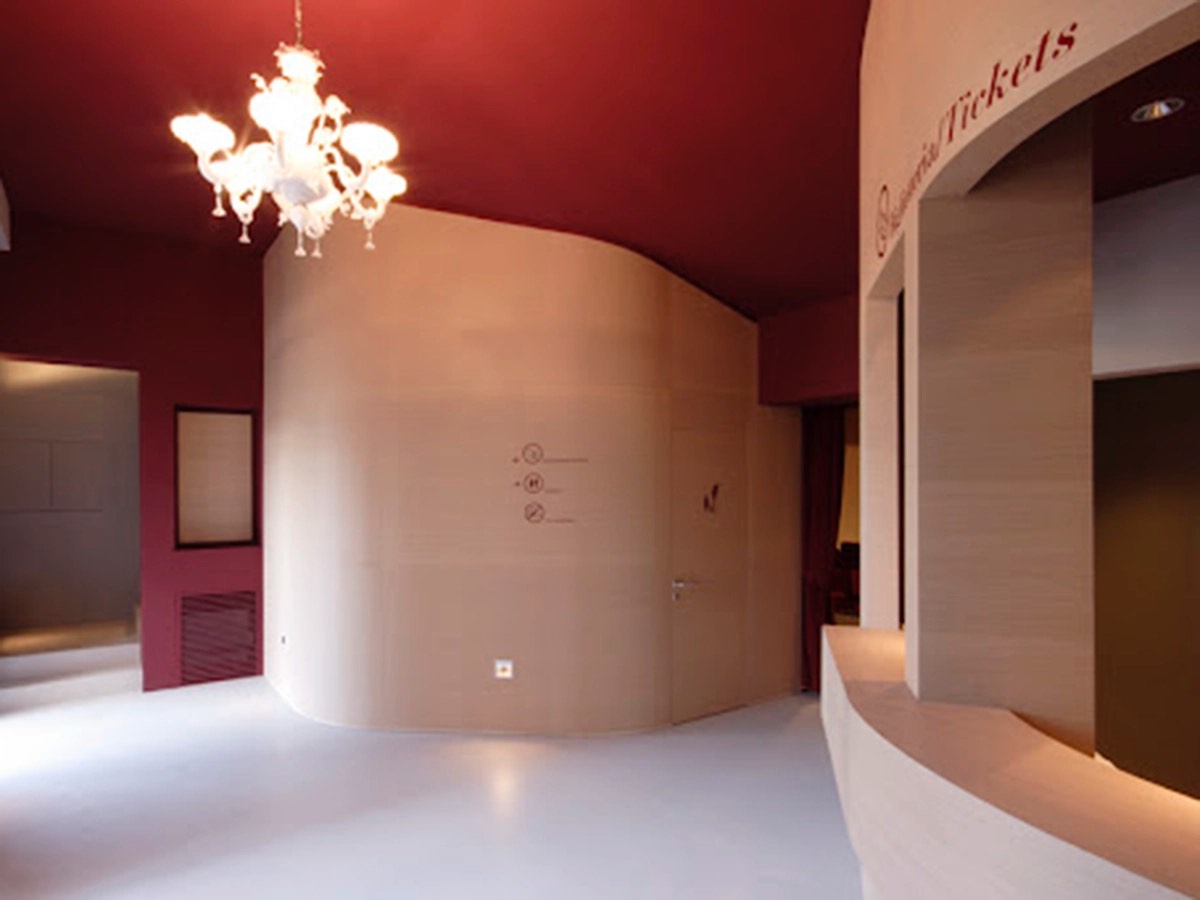 Custom built-in features and subtle detailing provide both functionality and elegance, harmonizing with the theater’s overall aesthetic. Curved and linear elements interact seamlessly, offering visitors an immersive and sophisticated public space that balances comfort and visual coherence.