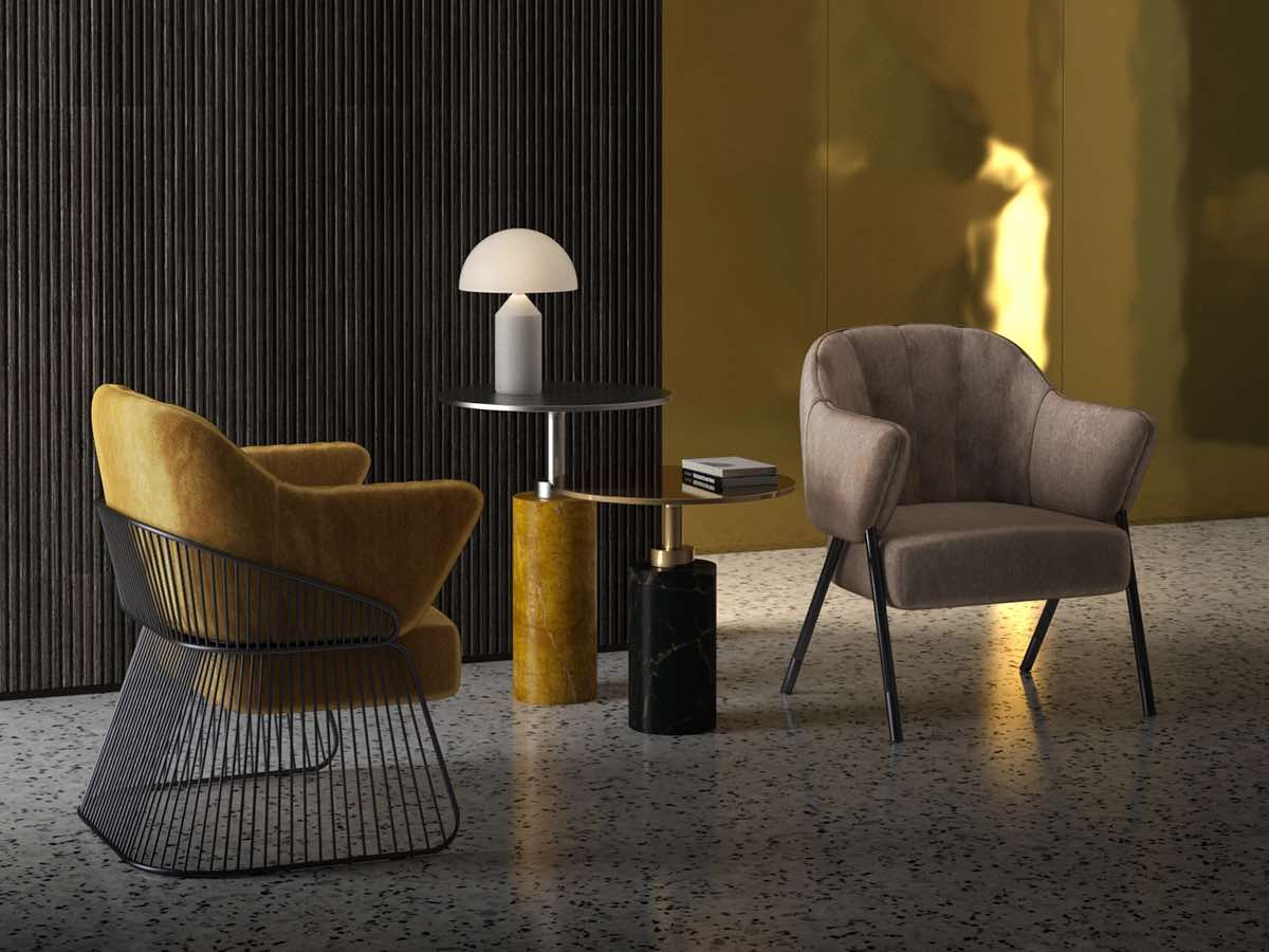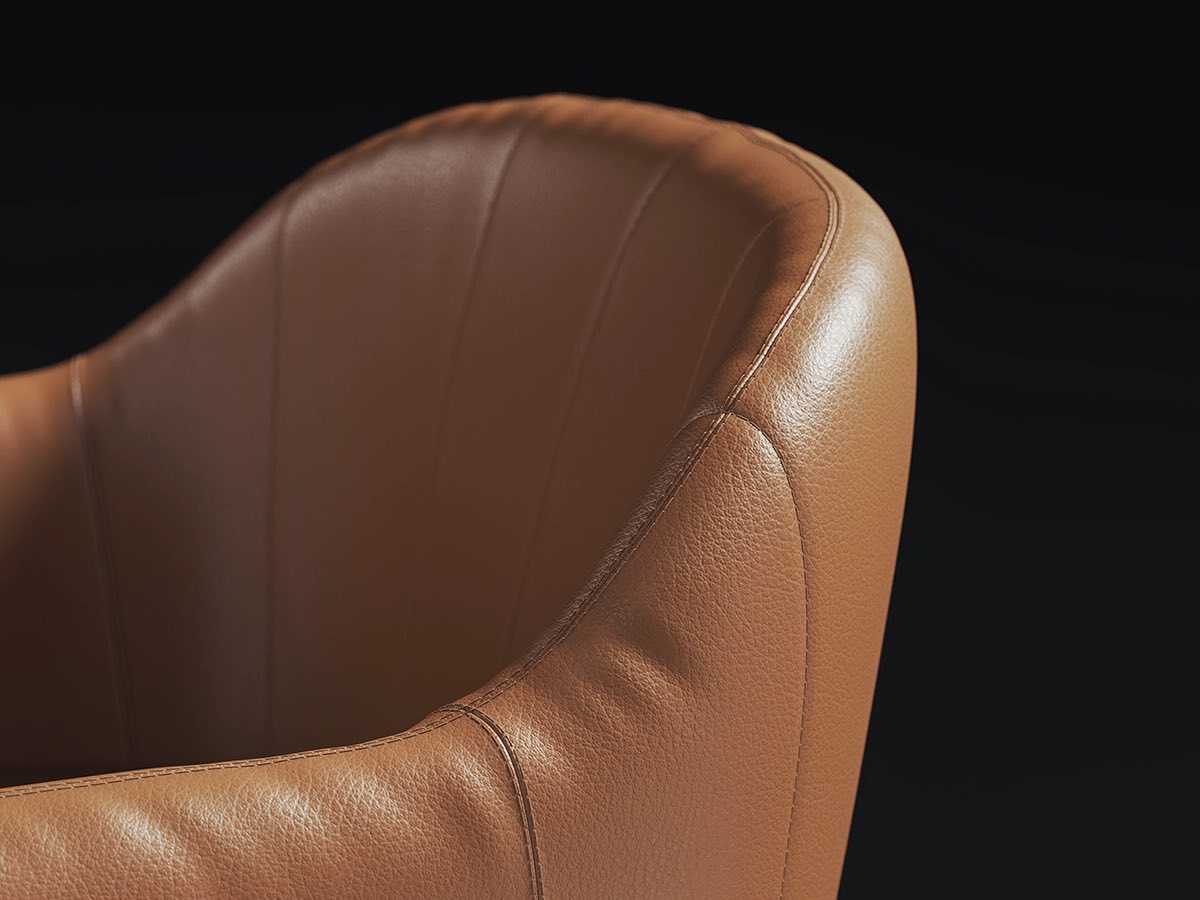 The Jackie Lounge Armchair by Rossato draws inspiration from classic mid-century leather armchairs, reinterpreted through inverted V-shaped tubular legs in polished and satin brass that support a matte brown leather seat and enveloping backrest. It embodies a refined dialogue between vintage charm and modern sensibility.