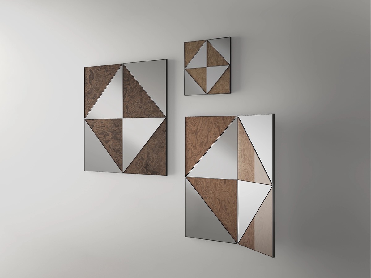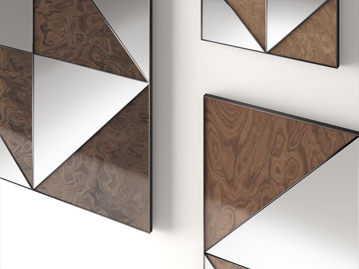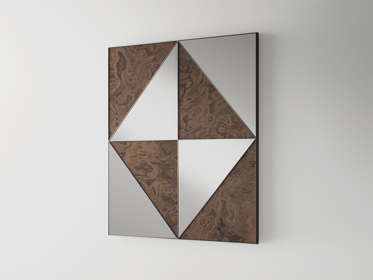 The Foscari Large Mirror by Rossato reinterprets origami’s exacting geometry through an arrangement of modular triangles. Extra-clear mirrored glass, dark burl wood, and brushed-nickel metal are composed in a way that fits seamlessly into different settings, forming a design that elevates interiors and reflects a lifestyle rooted in elegance and refined aesthetic sensibility.
