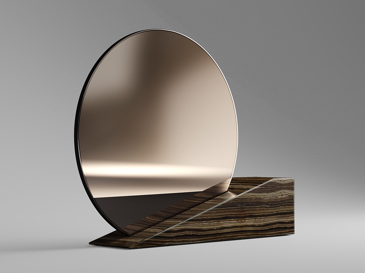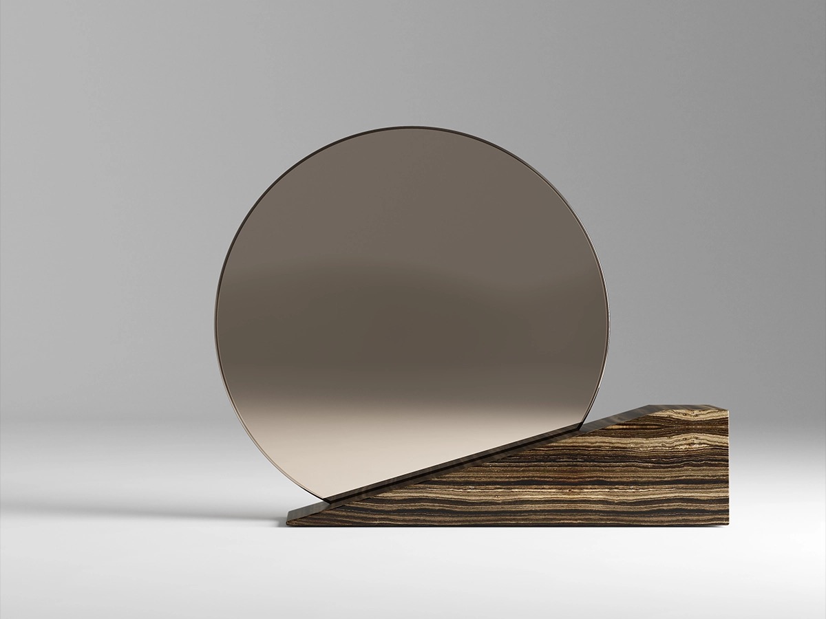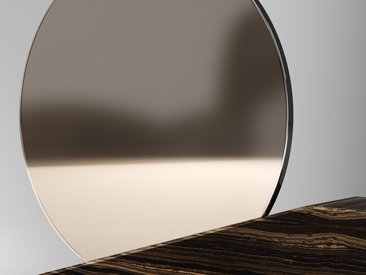 The Oliver Mirror by Rossato combines the depth of smoked glass with the natural veins of Eramosa marble. Defined by pure geometry, it balances decoration and function, offering a refined accent for consoles or desks and expressing an aesthetic where everyday gestures meet the pleasure of design