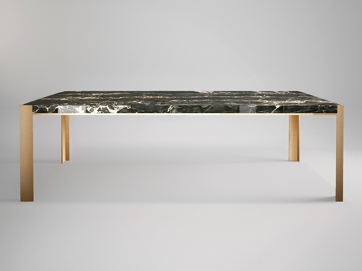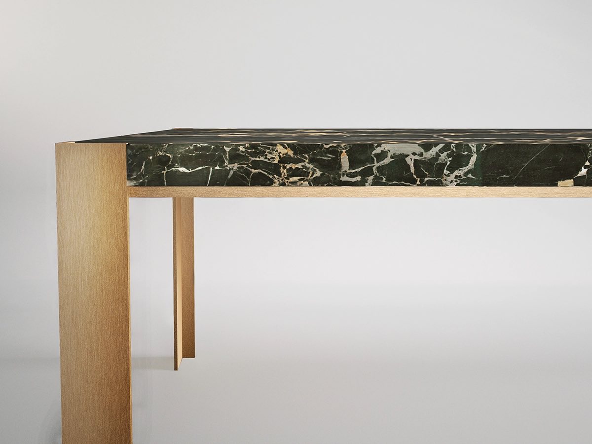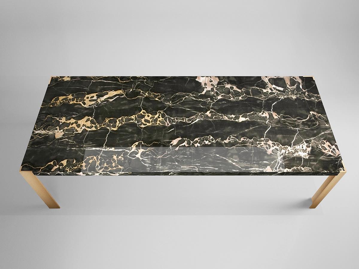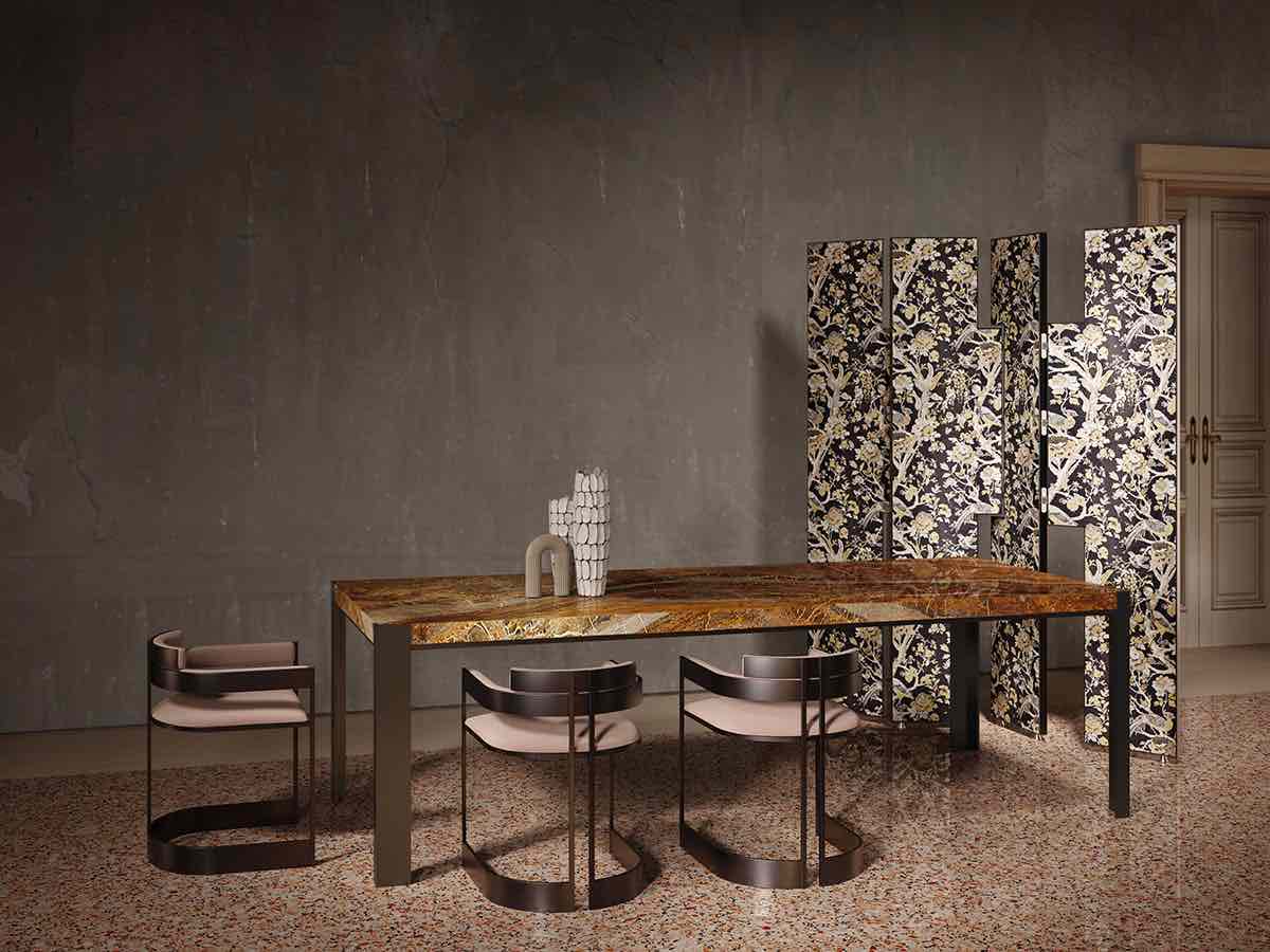 The Hugo Table by Rossato features a refined yet understated silhouette, combining a black Portoro marble top with a brushed satin brass metal frame. The natural veining of the marble adds warmth and visual interest, enhancing the table’s elegant simplicity while highlighting the craftsmanship and luxurious materials at the heart of its design.